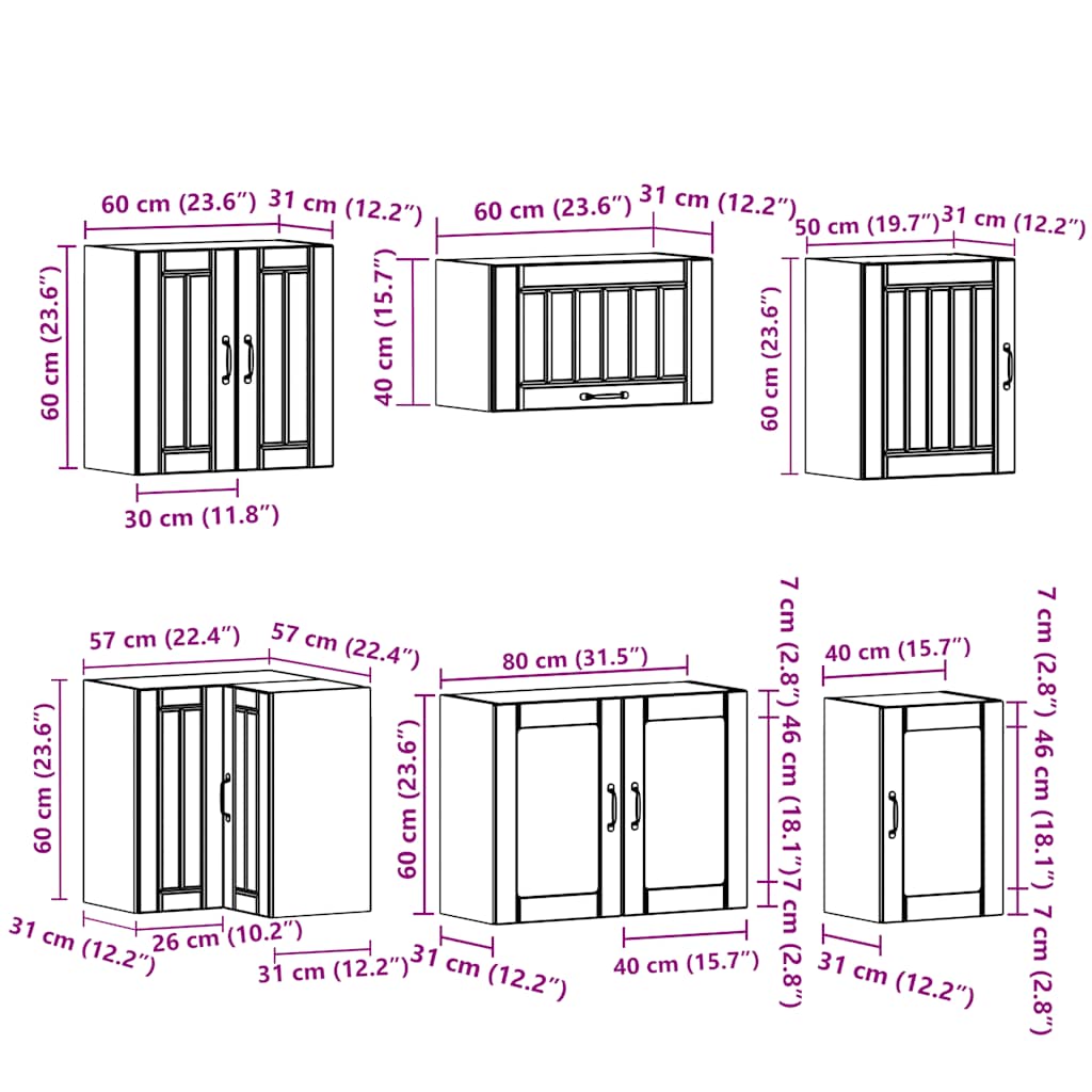 • 1 x keittiön seinäkaappi: 80 x 31 x 60 cm (L x S x K)