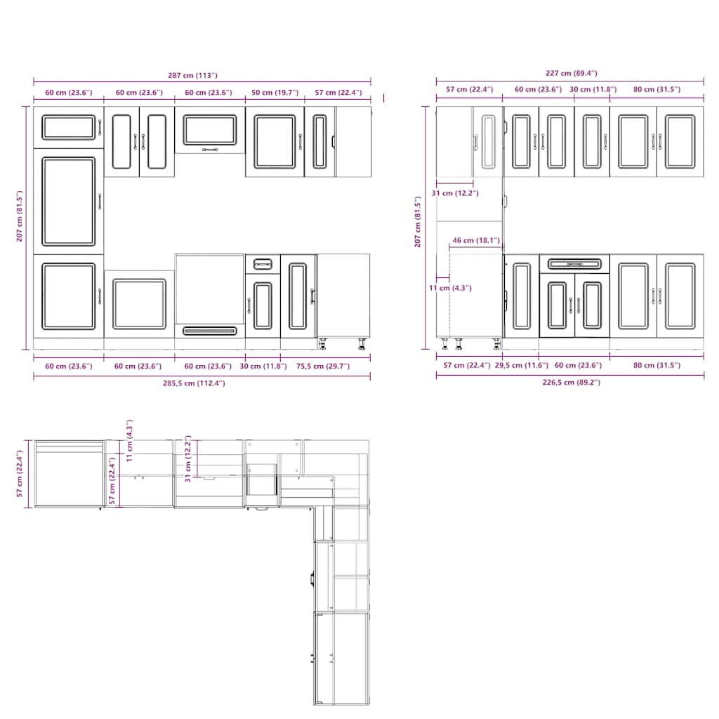• Runsaasti säilytystilaa: Keittiön kaappisarjassa on useita osastoja, ja se tarjoaa riittävästi tilaa kulhoille, lautasille, kattilille ja muille keittiökoneille.