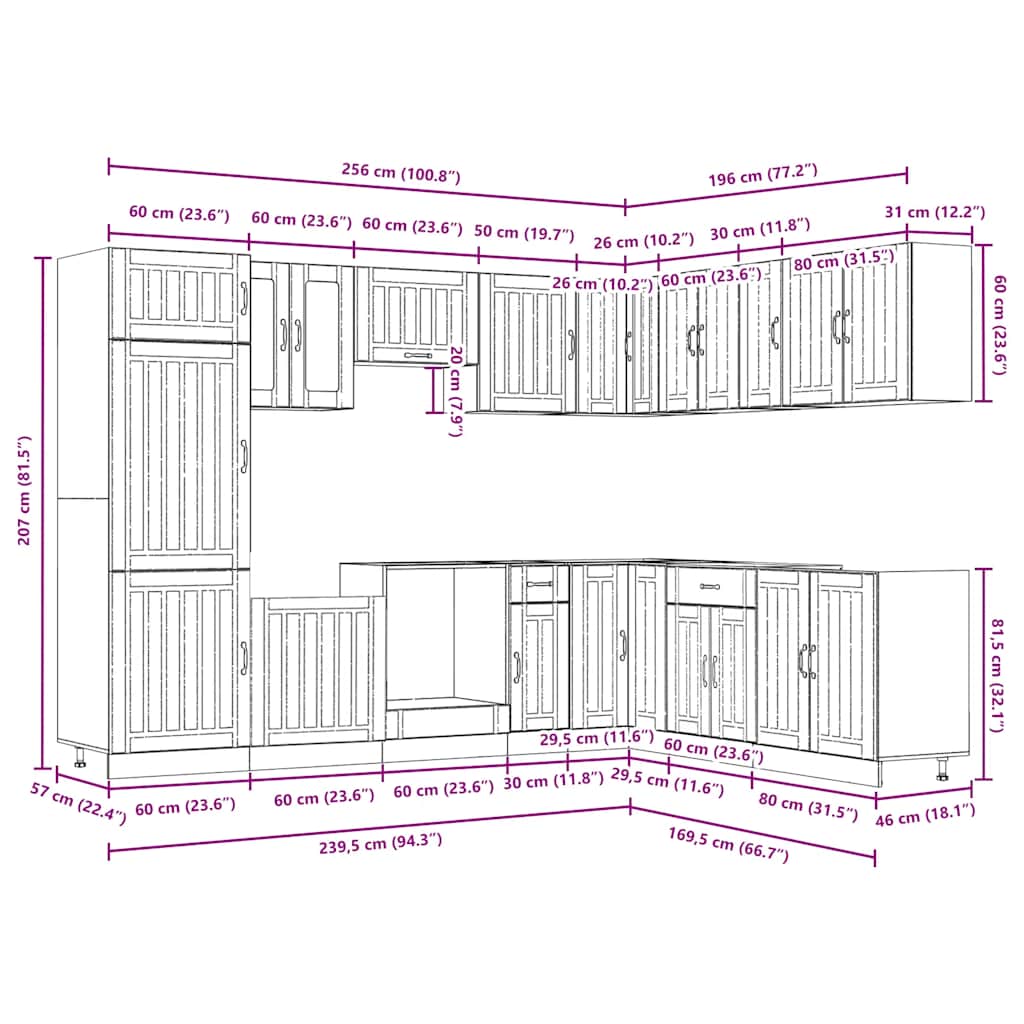 14-osainen keittiökaappisarja Lucca harmaa sonoma tekninen puu