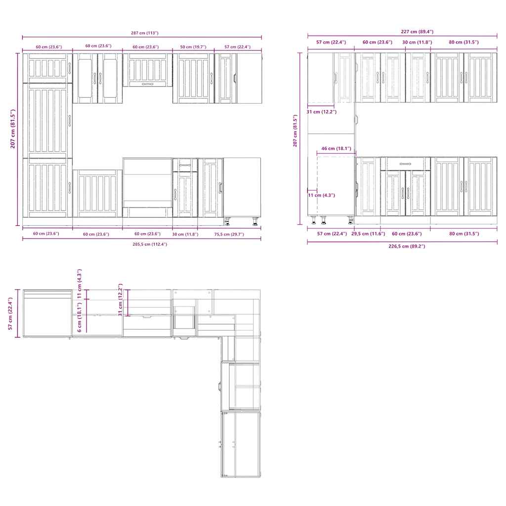 • 1 x keittiön kulmakaappi: 75,5 x 75,5 x 81,5 cm (L x S x K)