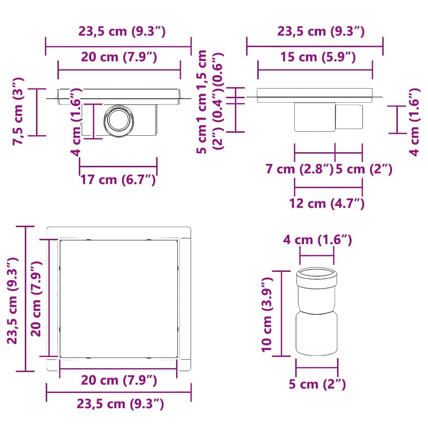 Tämä moderni suihkuviemäri, jossa on tyylikäs kuutiosuunnittelu, on täydellinen lisä mihin tahansa kylpyhuoneeseen, joka kaipaa nykyaikaista ilmettä. Minimalistinen ja hienostunut ulkonäkö parantaa kylpyhuoneen yleisilmettä samalla kun se tehokkaasti estää ei-toivottua veden virtausta.