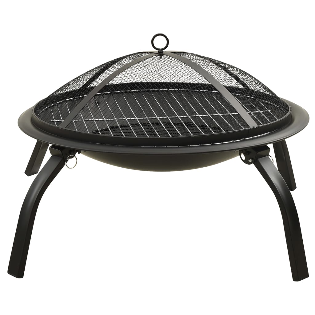 Teräksestä valmistettu tulimalja varaa ja säteilee lämpöä erinomaisesti. Suureen, syvän kulhon muotoiseen tulisijaan voit sytyttää suuren tulen ja nauttia siitä perheesi kanssa tuntikausia. Verkkokannen ansiosta tulimalja on suljettu turvallisesti, niin ettei ympäristöön lennä kipinöitä tai muita palotuotteita, joten voit rauhassa katsella palavia puita. Verkkokannessa on kätevä rengas, jonka ansiosta sitä on helppo kantaa. Hiilihankoa apuna käyttäen voit poistaa verkkokannen ja järjestää polttopuut uudelleen. Mukana tulevan paistoritilän avulla voit käyttää tulimaljaa grillinä. Tämän kaiken lisäksi jalat voidaan taittaa kokoon kuljetuksen helpottamiseksi.
