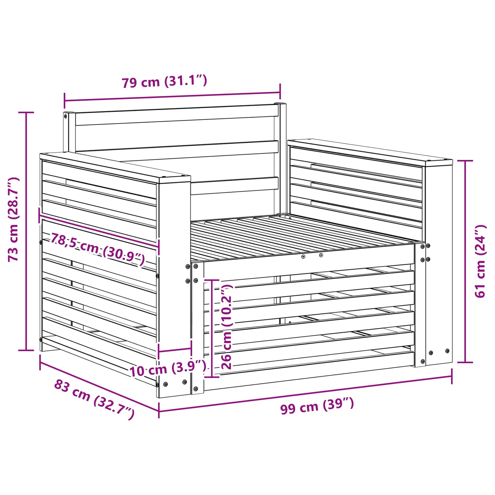 • 1 x Keskisohva: 79 x 83 x 73 cm (PxLxK)