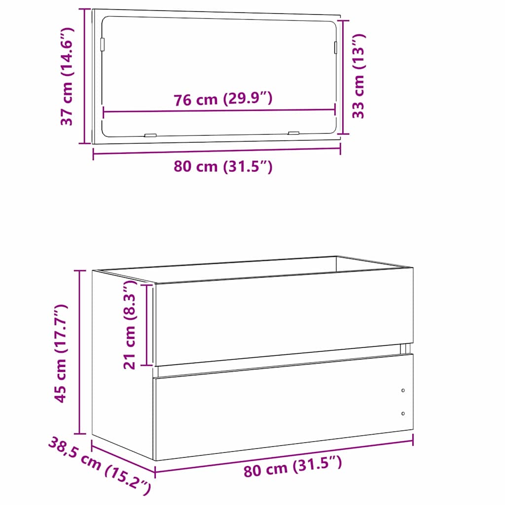 2 Kappaleen Kylpyhuonekalustesetti Musta Tammi MDF