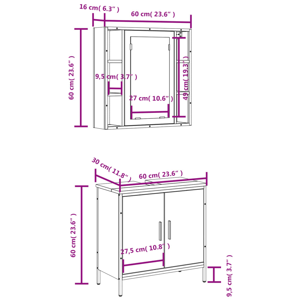 2-osainen Kylpyhuonekalustesarja musta tekninen puu