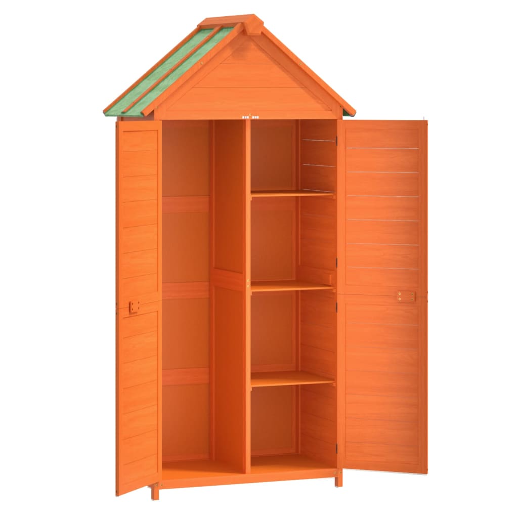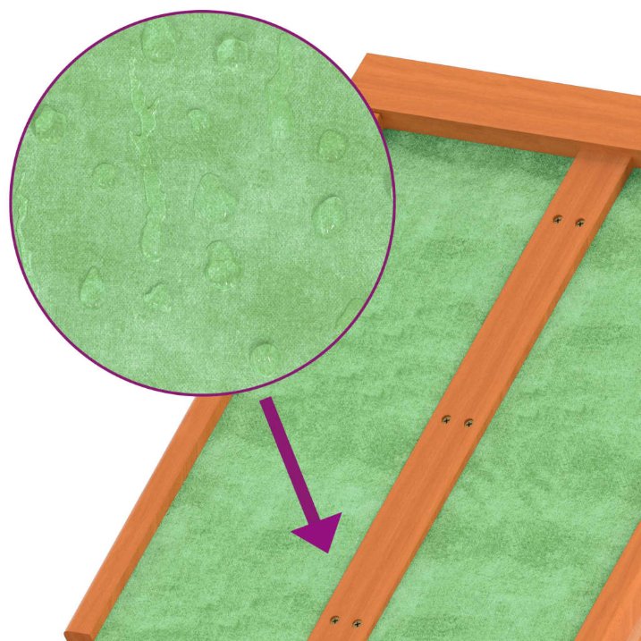 • Sateenpitävä katto: Kalteva katto on sateenkestävä, joka pidentää ulkovaraston käyttöikää.