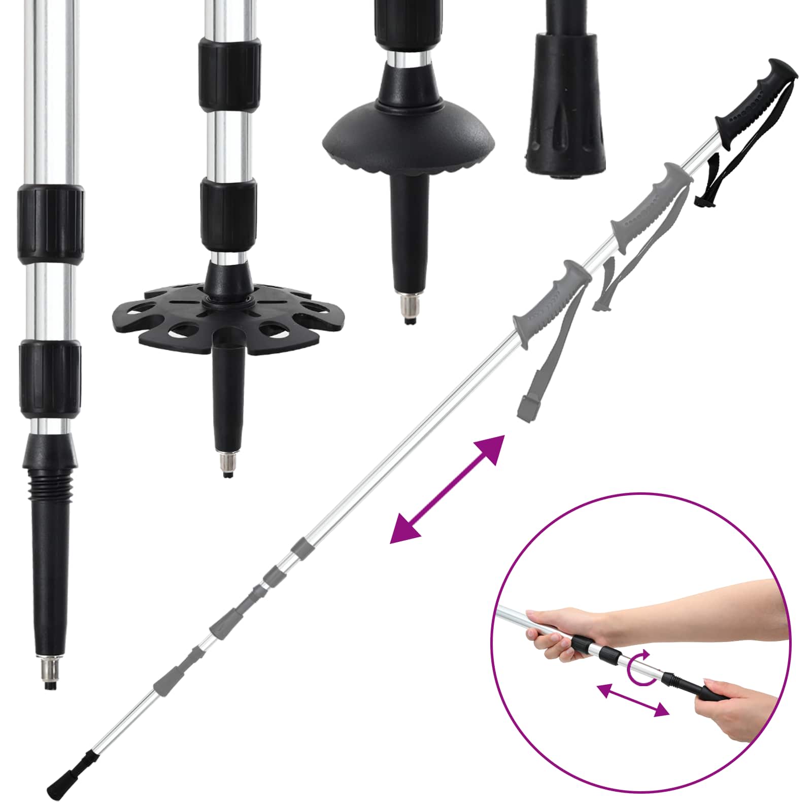 • Säädettävät iskunvaimennusvaellussauvat käännöllä