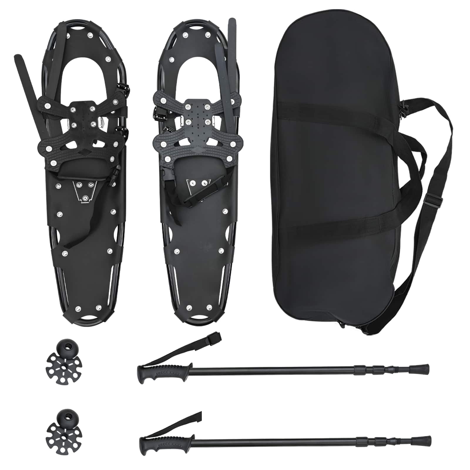 Aluminirunko ja polyeteenipohja: Kestävä alumiinirunko ja polyeteenipohja kestää kovaa menoa ulkona, joten saat varmasti luotettavaa suorituskykyä lumivaelluksilla. Kylmän kestävyys varmistaa, että voit liikkua vaivattomasti lumisissa olosuhteissa. Täydellinen setti: Pakkaus sisältää parin lumikenkiä, kaksi säädettävää vaellustankoa ja kätevän kantopussin, mikä on täydellinen valinta, jos etsit kaikki yhdellä hankinnalla. Kaikki osat on suunniteltu helppoon kuljetukseen ja säilytykseen, niin olet aina valmis seikkailuun. Kylmän kestävät ominaisuudet: HDPE-pohja on tehty erityisesti kylmiquesi olosuhteissa ja säädettävä kantanyöri auttaa pitämään jalat paikoillaan. Näin varmistat mukavuuden ja hallinnan kaikilla maastoilla. Monipuoliset käyttötavat: Yksi setti toimii niin vuoristovuorilla kuin eristyneillä poluillakin, ja se mukautuu kenkäkokoihin 38-48 ratchet-järjestelmän avulla, joten se käy moneen käyttöön. Helppo huolto: Säilytä varusteet viileissä ja kuivissa paikoissa, ja pyyhi ne puhtaaksi kuivalla liinalla, niin säilytät niiden hyvän kunnon. Vältä kävelyä asfaltilla eheyden säilyttämiseksi, ja tarkista varusteet ennen kauden käyttöönottoa.`