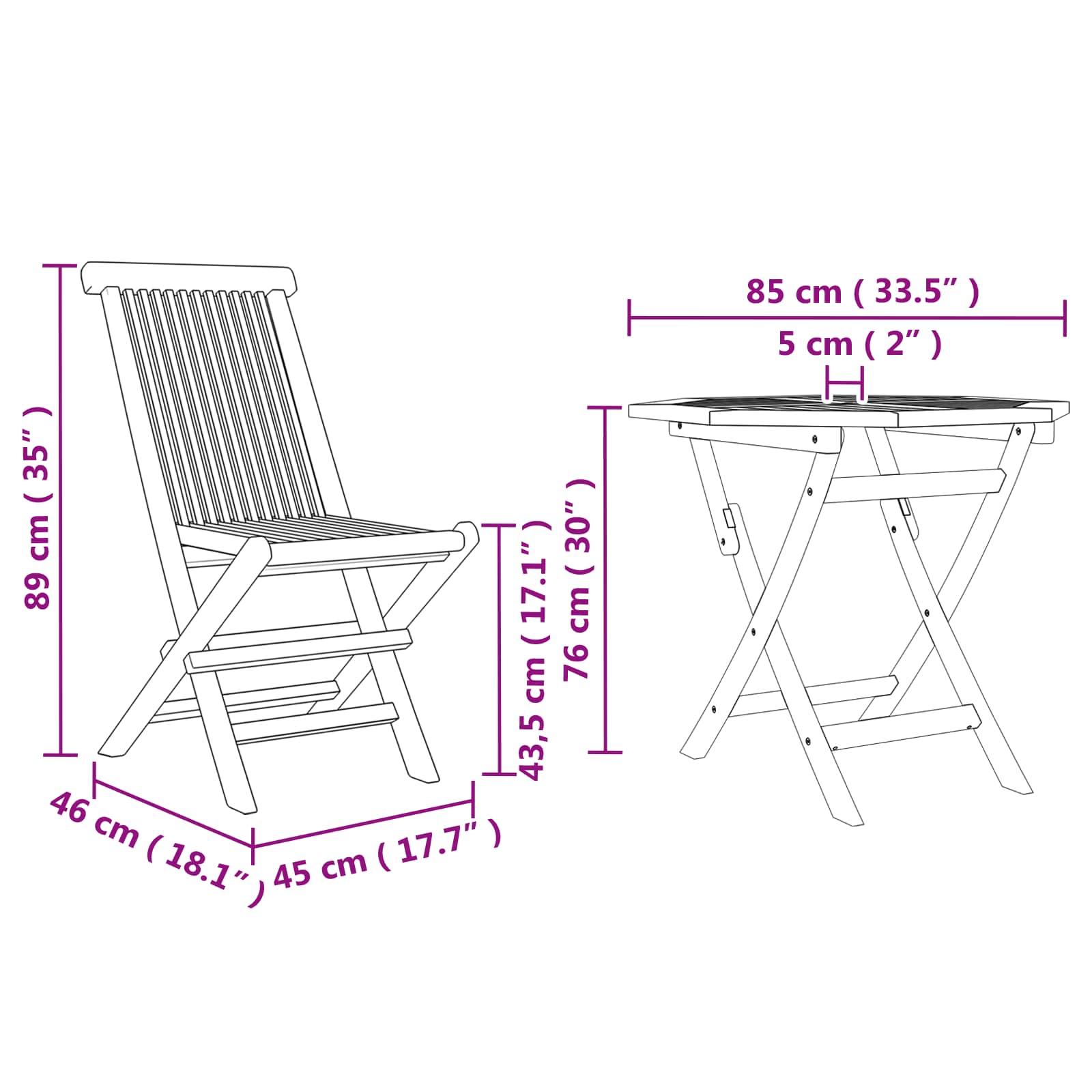 3-osainen kokoontaittuva bistro-setti kestävästä teak-puusta