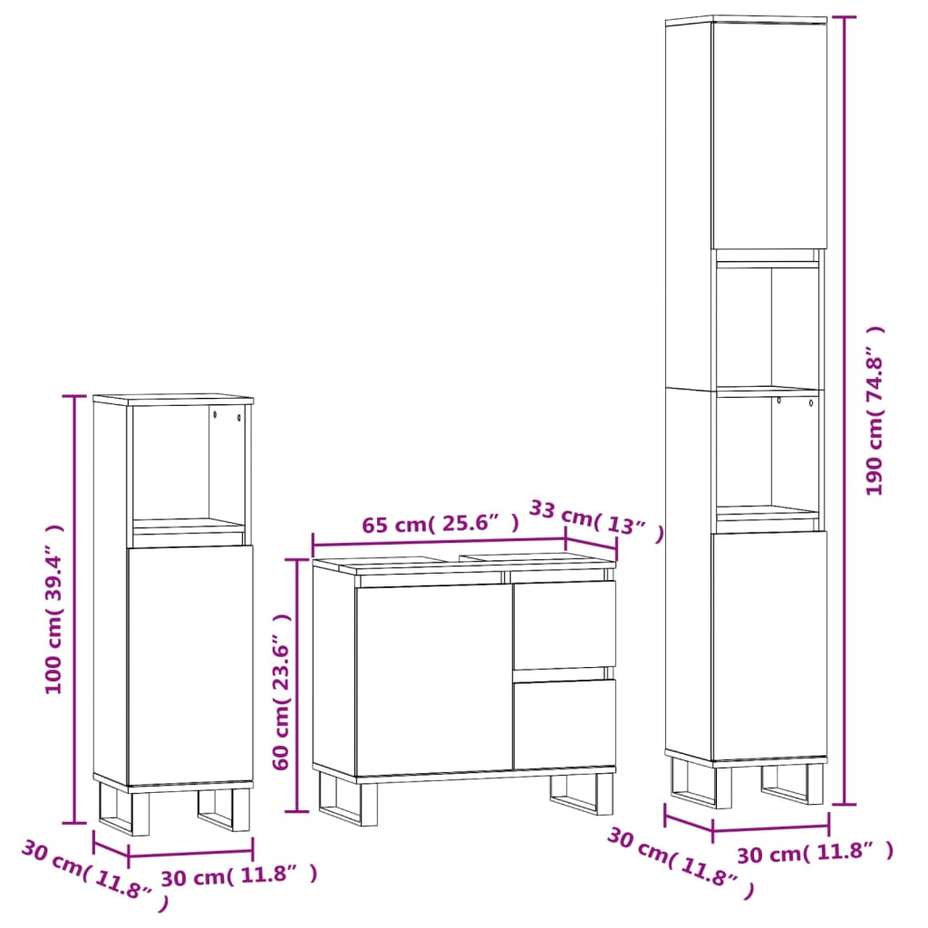 3-osainen Kylpyhuoneen kalustesarja harmaa Sonoma tekninen puu