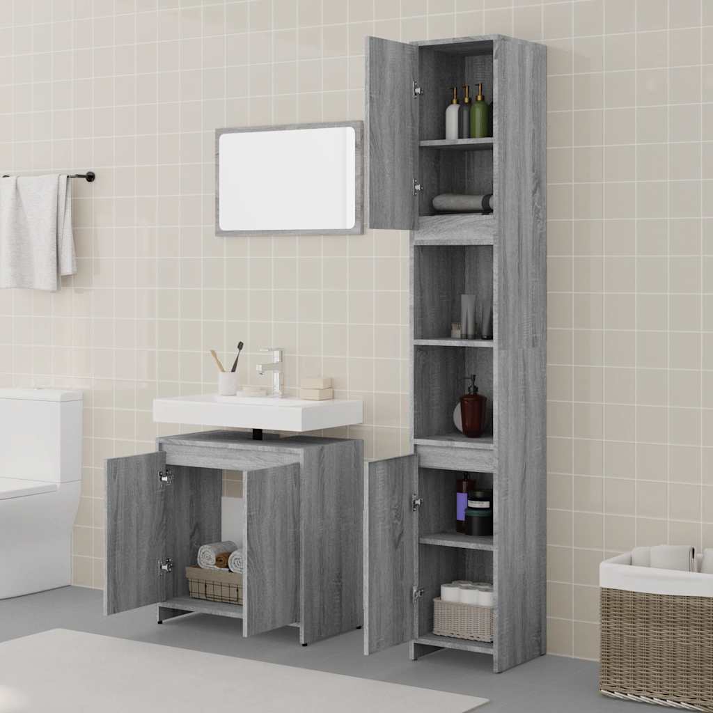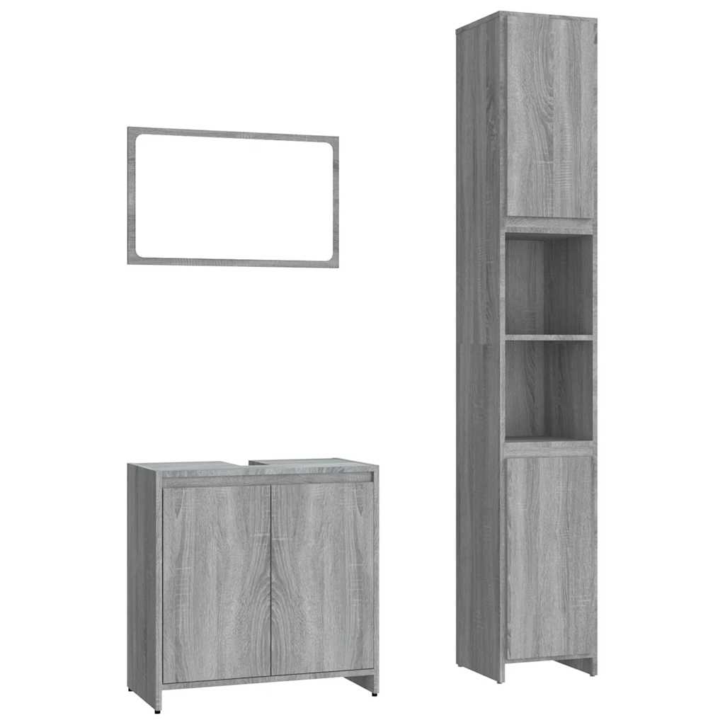 3-osainen Kylpyhuoneen kalustesarja harmaa Sonoma tekninen puu