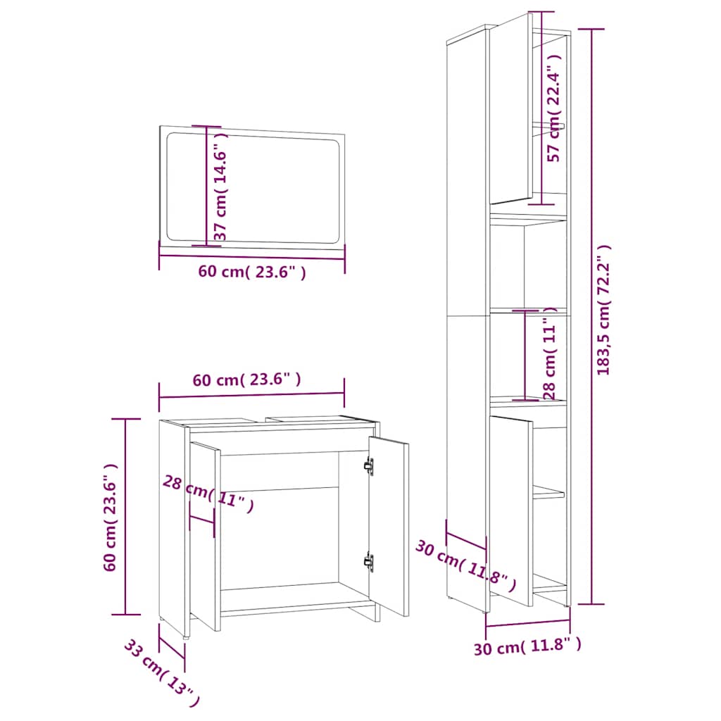 Tämä 3-osainen tyylikäs kylpyhuoneen kalustesarja suurella säilytystilalla on loistava lisä kylpyhuoneeseesi ja tekee siitä siistin ja vaikuttavan näköisen!