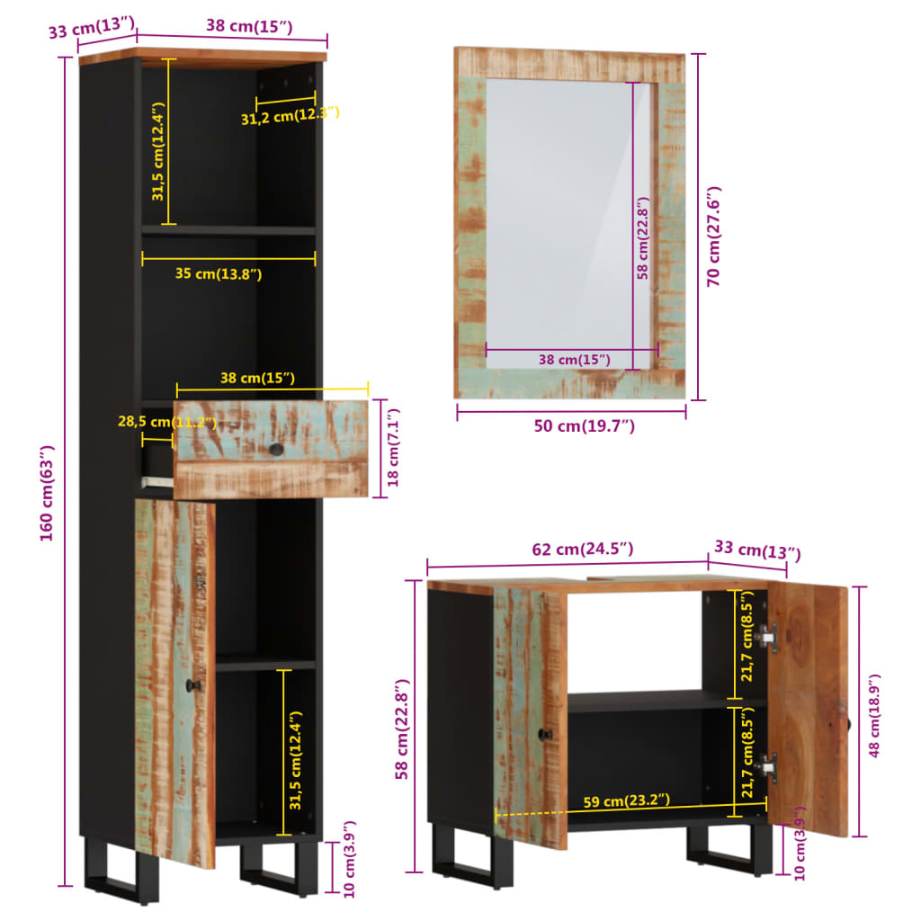 3-osainen Kylpyhuoneen kalustesarja kierrätetty täyspuu