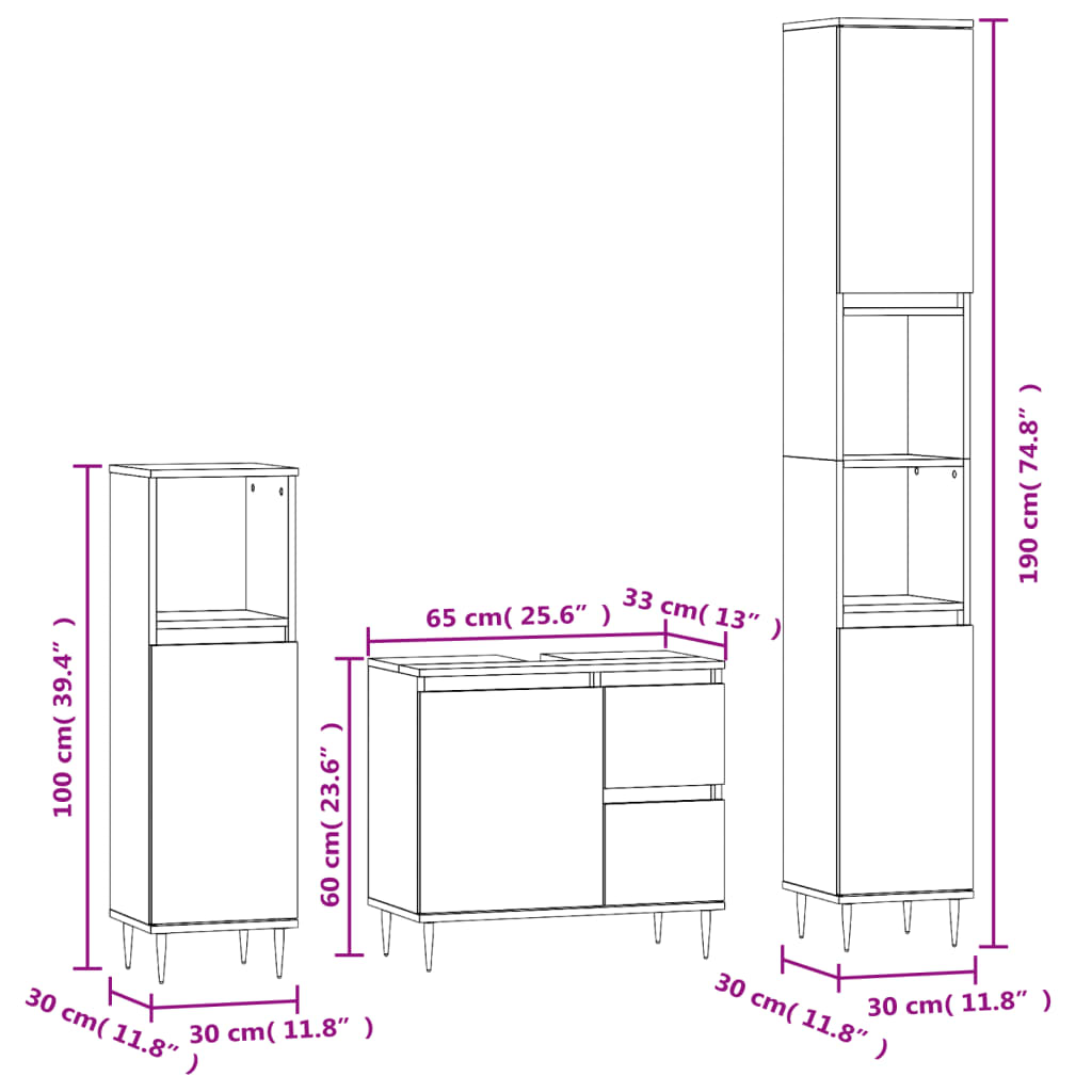 3-osainen Kylpyhuoneen kalustesarja ruskea tammi tekninen puu