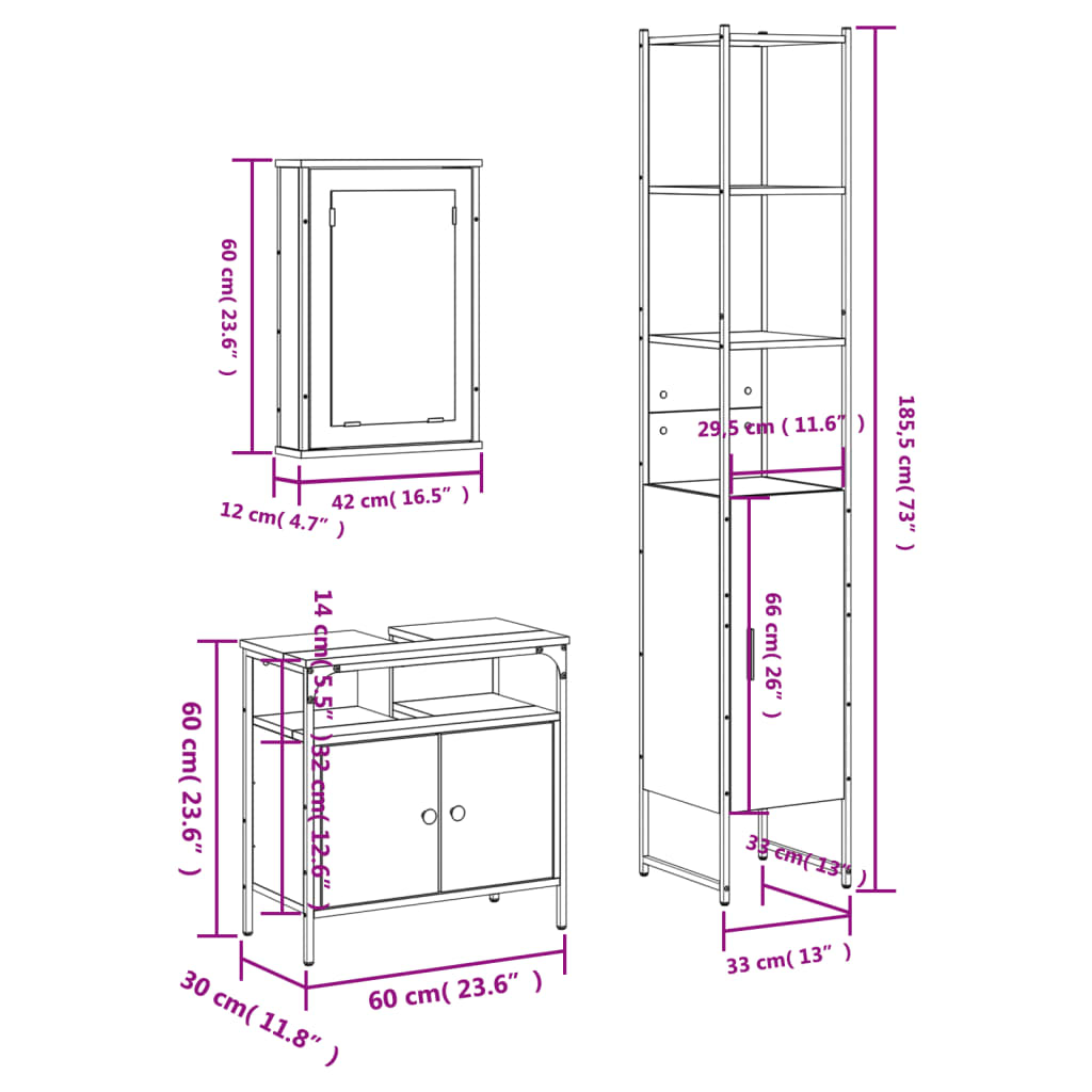 3-osainen Kylpyhuoneen kalustesarja savutammi tekninen puu