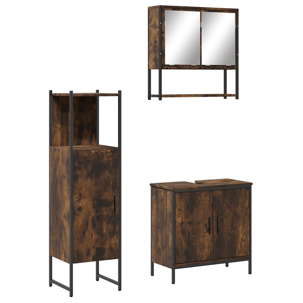 3-osainen Kylpyhuoneen kalustesarja savutammi tekninen puu