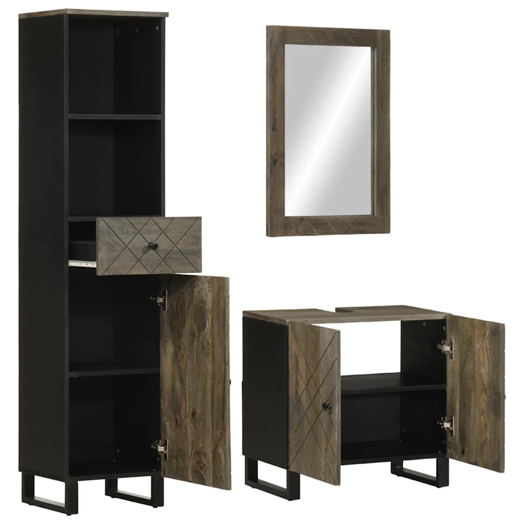 3-osainen kylpyhuonekalustesarja musta massiivipuinen mango