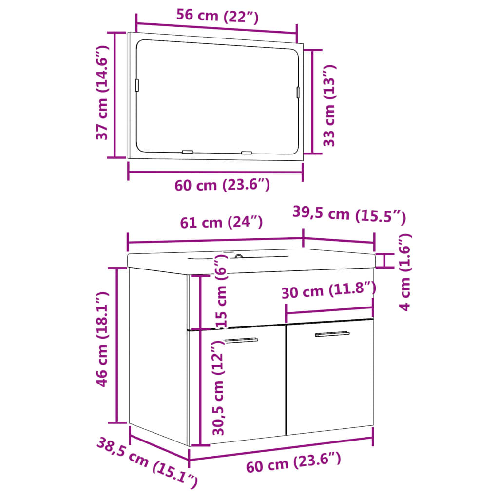 3-osainen Kylpyhuonekalustesarja Sonoma-tammi tekninen puu