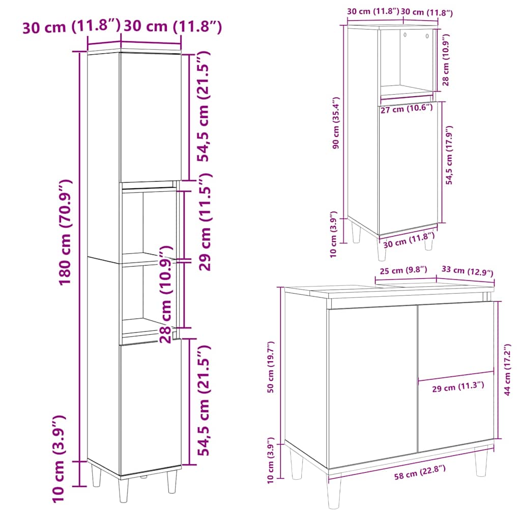 3-osainen Kylpyhuonekalustesarja Sonoma-tammi tekninen puu
