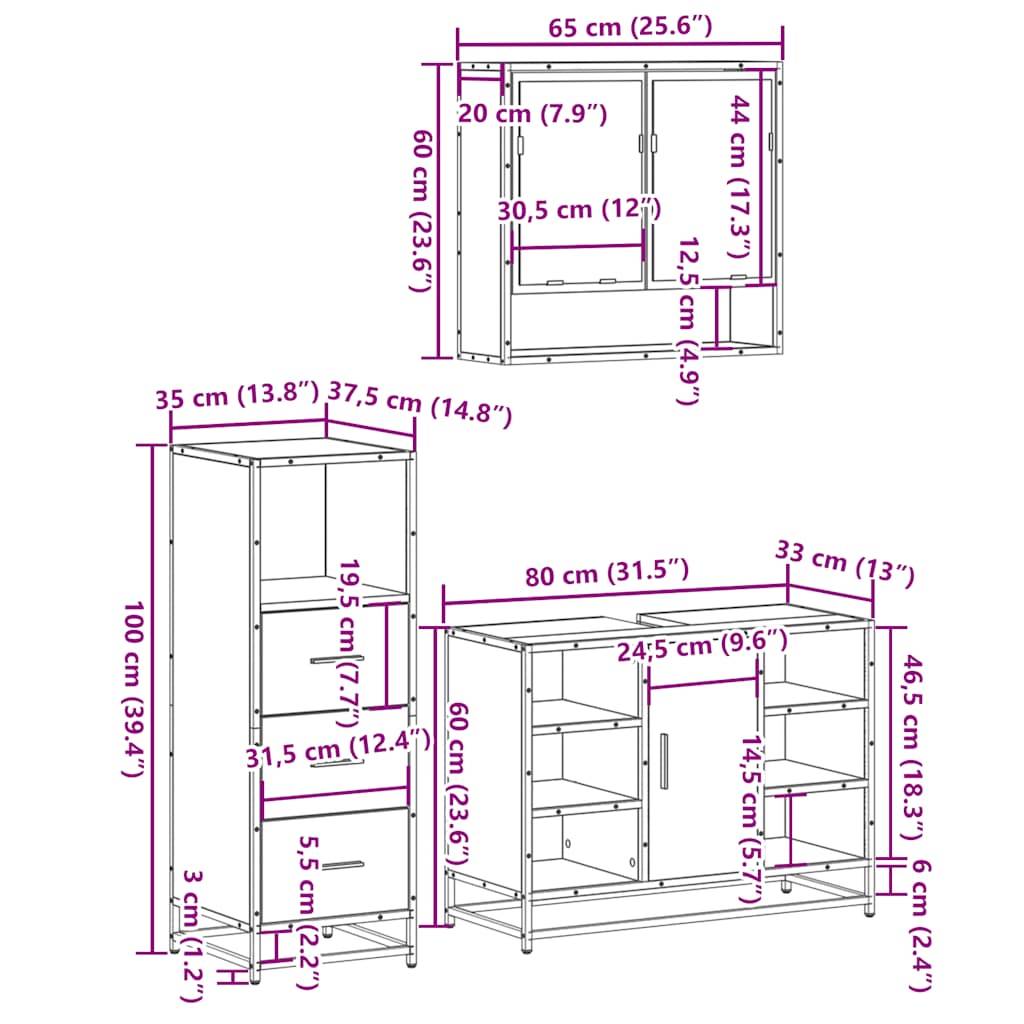 3-osainen Kylpyhuonekalustesarja Sonoma-tammi tekninen puu