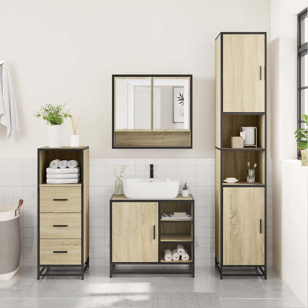 3-osainen Kylpyhuonekalustesarja Sonoma-tammi tekninen puu