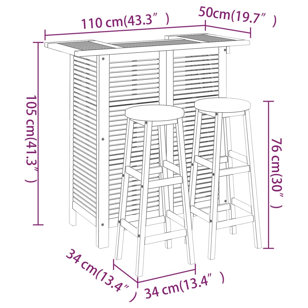 3-osainen Puutarhabaariryhmä täysi akasiapuu
