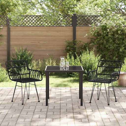 Tää puutarhatuolien setti yhdistää hyvän muotoilun ja käytännöllisyyden, tuoden tyylikästä ilmettä mihin tahansa ulkotilaan. Musta viimeistely ja vahva teräsrakenne parantaa puutarhaasi, parvekettasi tai terassiasi ja tarjoaa mukavaa istumatilaa syömiseen tai rentoutumiseen.