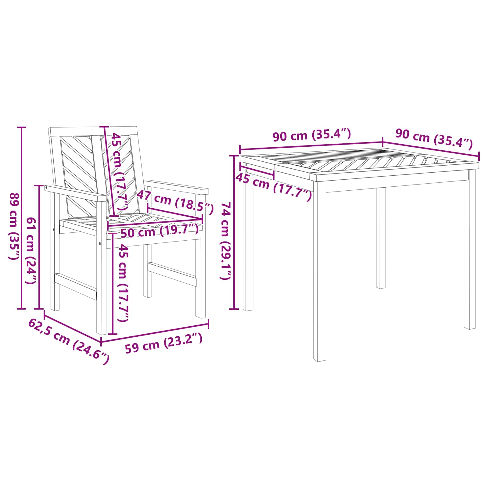 Tämä puutarhan ruokailusetti sopii mainiosti pienemmille tiloille ja yhdistää tyylin ja käytännöllisyyden. Se on valmistettu kestävästä akaasiapuusta ja sisältää neliöpöydän sekä kaksi hienosti muotoiltua tuolia, täydelliset läheisten kokoontumisten viettoon parvekkeella tai terassilla.