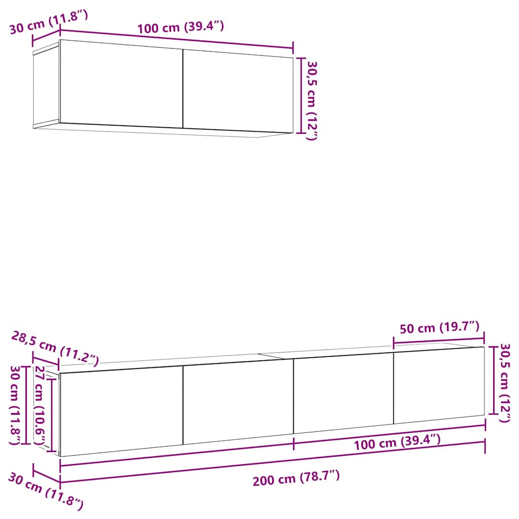3-osainen TV-kaappisarja Seinäkiinnitettävä Musta tammi Tekninen puu