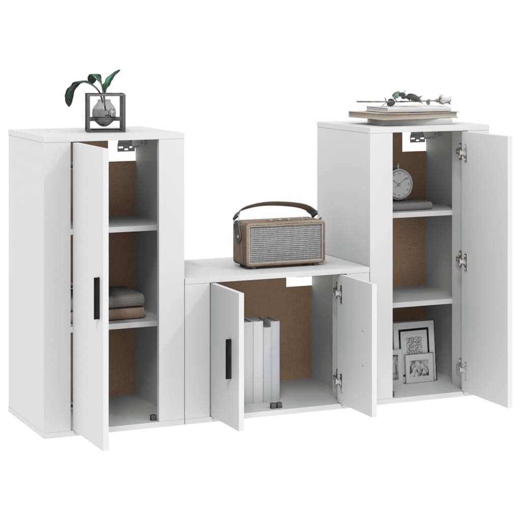 3-osainen TV-kaappisarja valkoinen tekninen puu