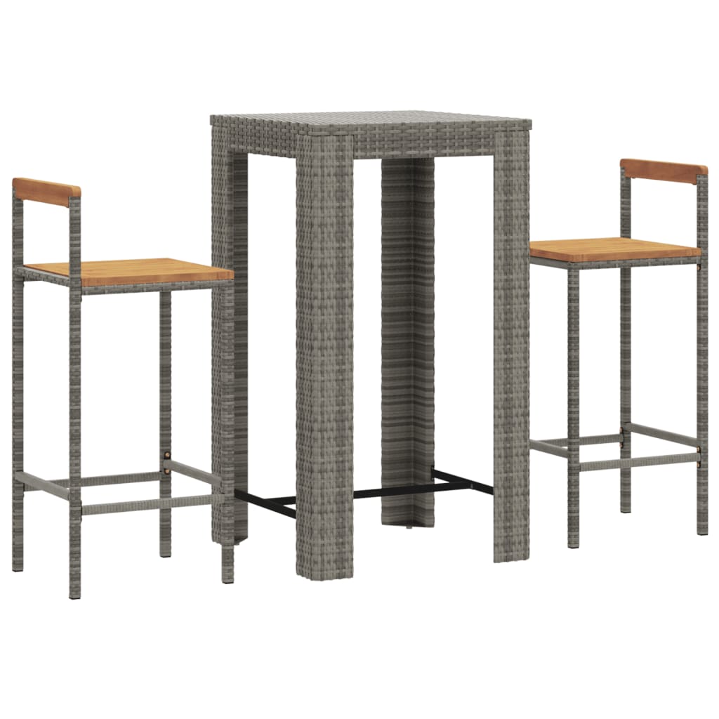 3-osainen Ulkobaarisarja harmaa polyrottinki/täysi akasiapuu
