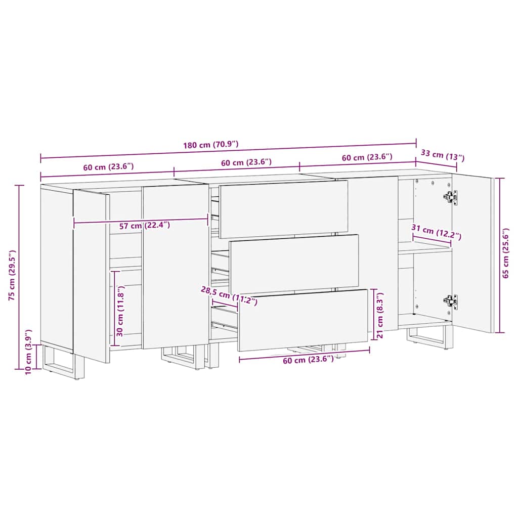 3-osaiset senkit musta 60x33x75 cm massiivipuu mango