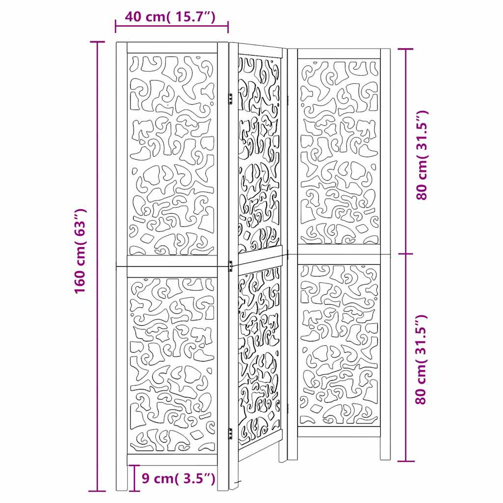 3-Paneelinen tilanjakaja musta täysi keisaripuu