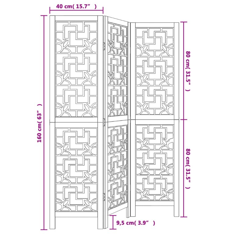 3-Paneelinen tilanjakaja ruskea täysi keisaripuu