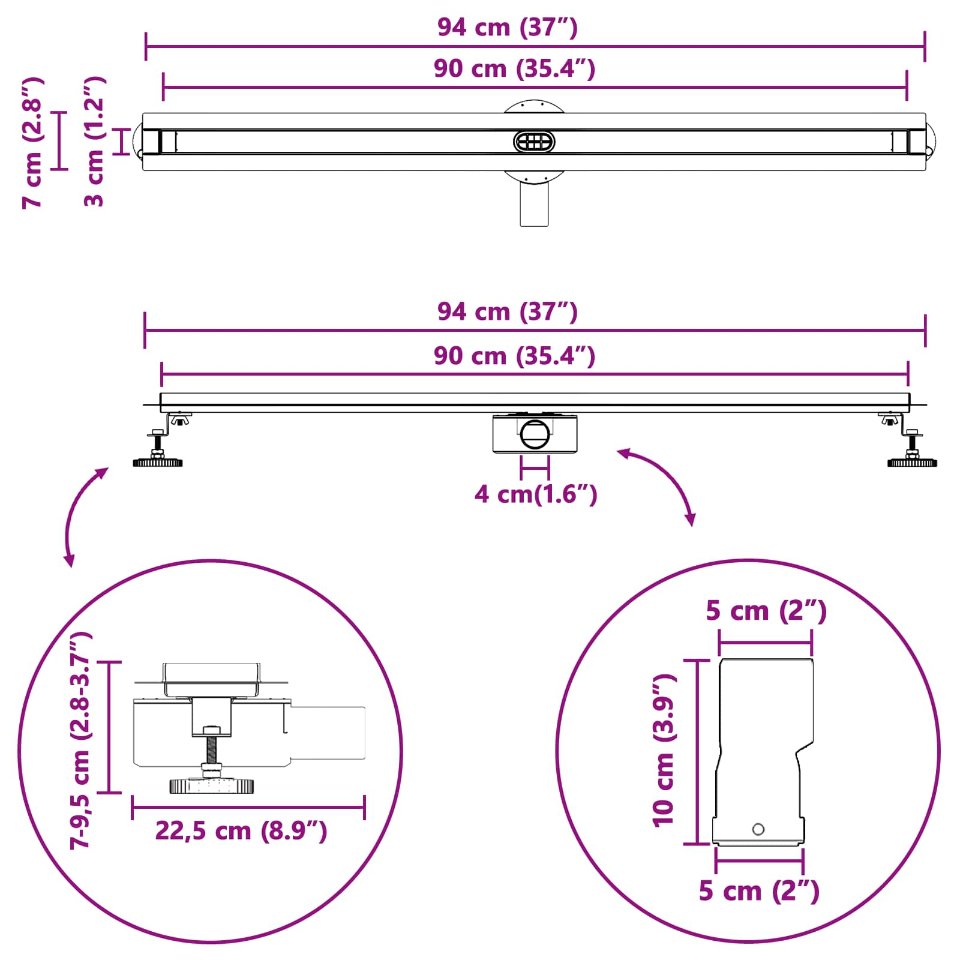 Tämä 360° suihkukaivo on fiksu valinta moderniin kylpyhuoneeseen, jolloin saat sekä käytännöllisyyttä että minimalistista tyyliä. Sen silmää miellyttävä hopeinen pinta ja ruostumattoman teräksen rakenne tekevät siitä kestävän ja elegantin. Loistava valinta kodinomistajille, jotka arvostavat kauniita ja käytännöllisiä ratkaisuja nykyaikaisissa kylpyhuoneissa. Kaivo tarjoaa ovelan vedenpoistoratkaisun hienostuneella ilmeellä, täydellisesti suunnitelluille tiloille, joissa yksityiskohdat ovat tärkeitä.