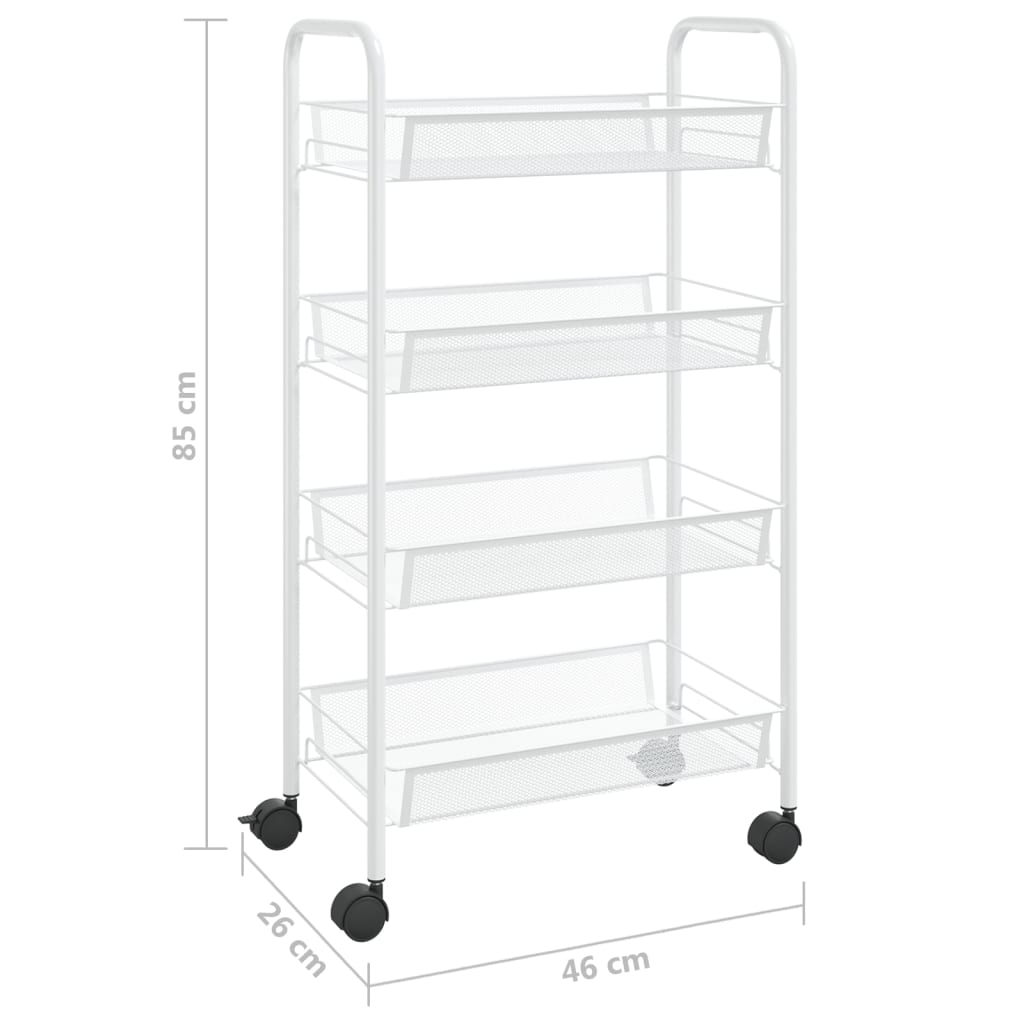 4-kerroksinen keittiövaunu valkoinen 46x26x85 cm rauta