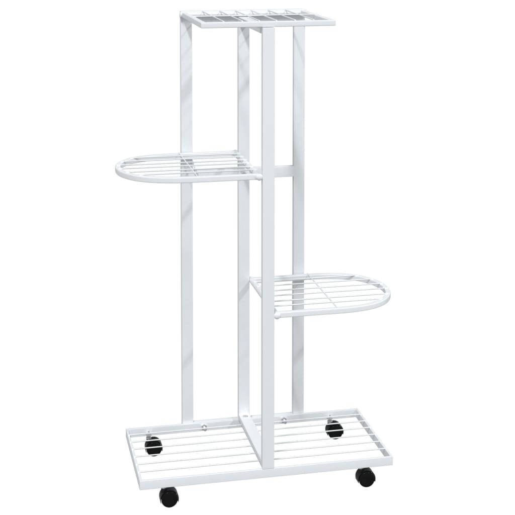 4-kerroksinen Kukkateline pyörillä 44x23x80 cm valkoinen rauta