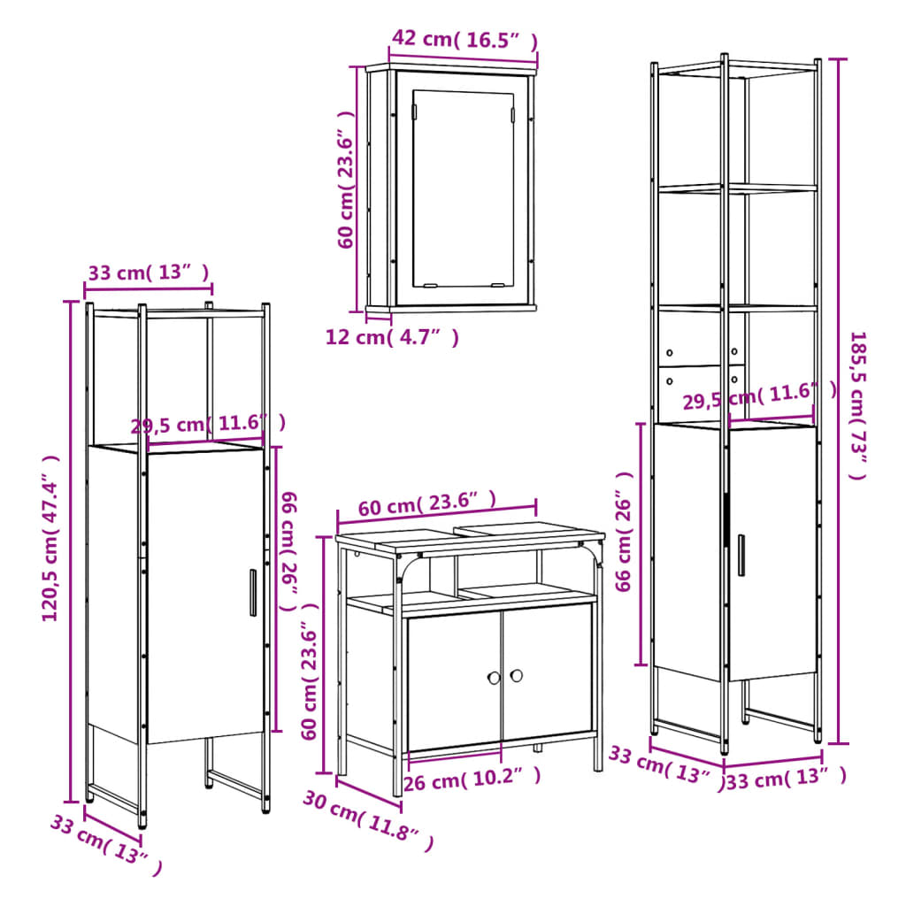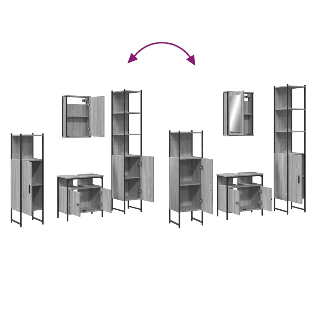 4-osainen Kylpyhuoneen kalustesarja harmaa Sonoma tekninen puu