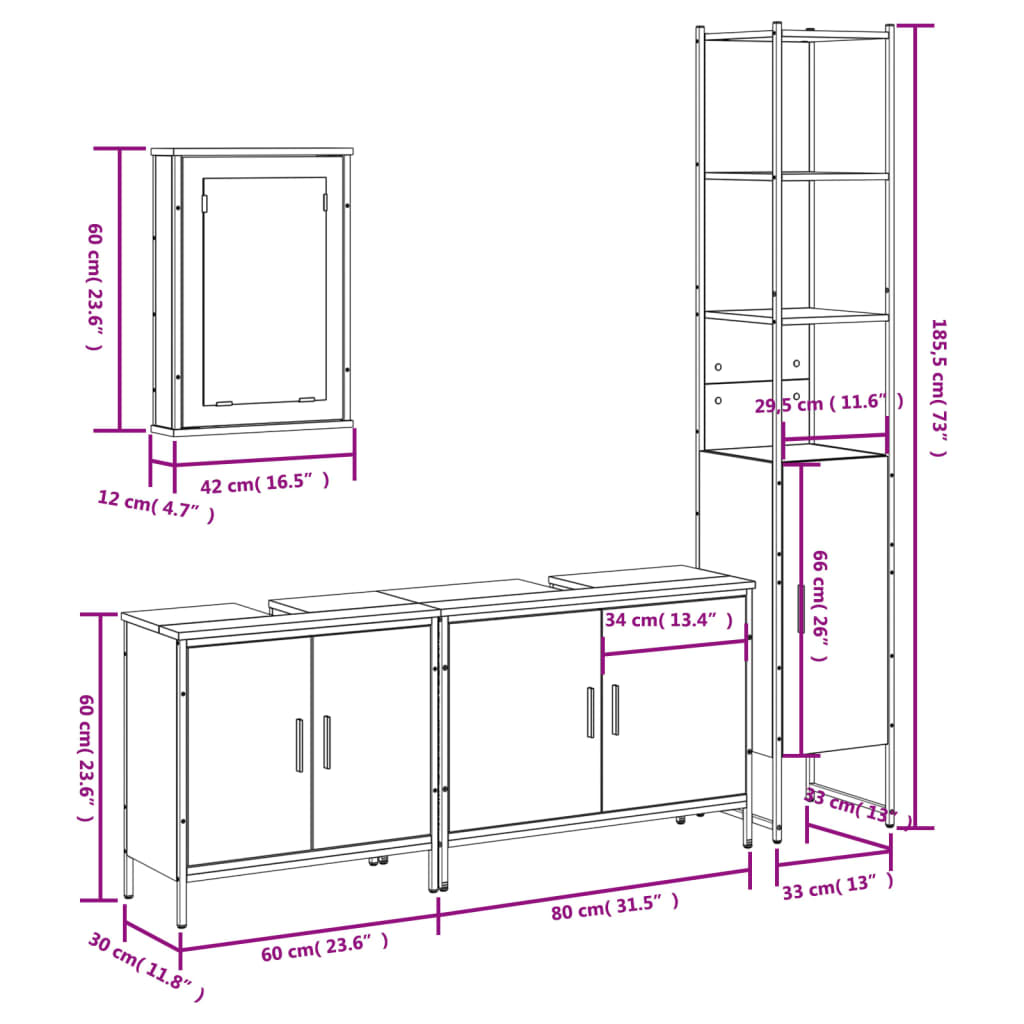 4-osainen Kylpyhuoneen kalustesarja harmaa Sonoma tekninen puu