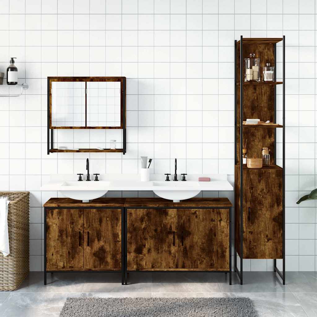 4-osainen Kylpyhuoneen kalustesarja savutammi tekninen puu