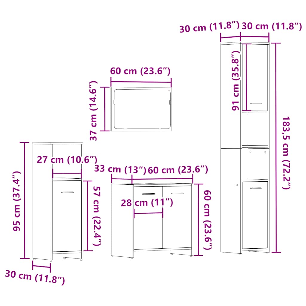 4-osainen Kylpyhuoneen kalustesarja tammi tekninen puu