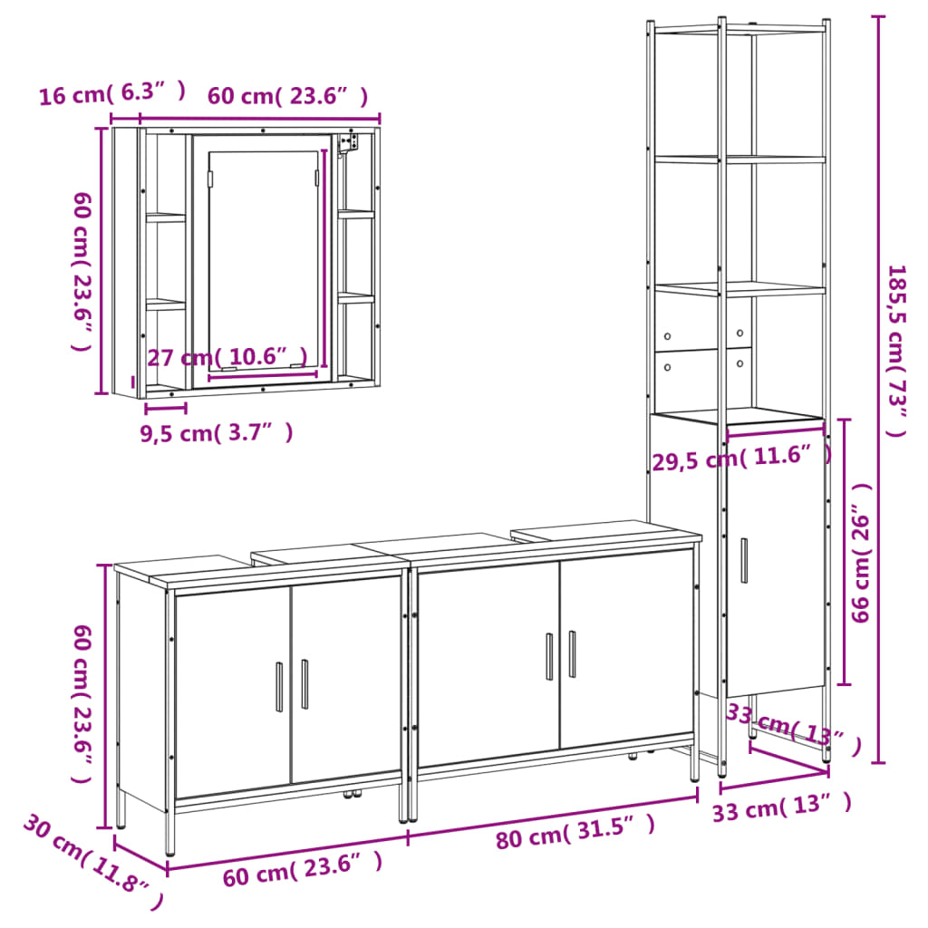 4-osainen Kylpyhuonekalustesarja musta tekninen puu