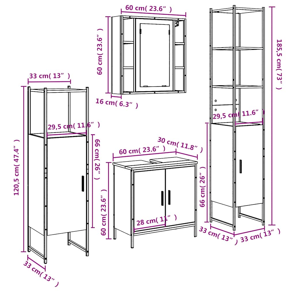4-osainen Kylpyhuonekalustesarja musta tekninen puu
