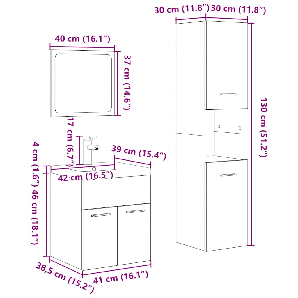 4-osainen Kylpyhuonekalustesarja Sonoma-tammi tekninen puu