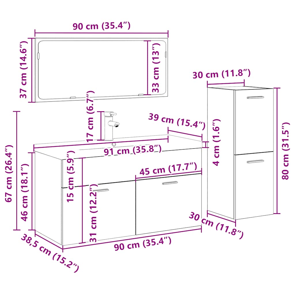 • Kylpyhuoneen kaapin mitat: 30 x 30 x 80 cm (L x S x K)