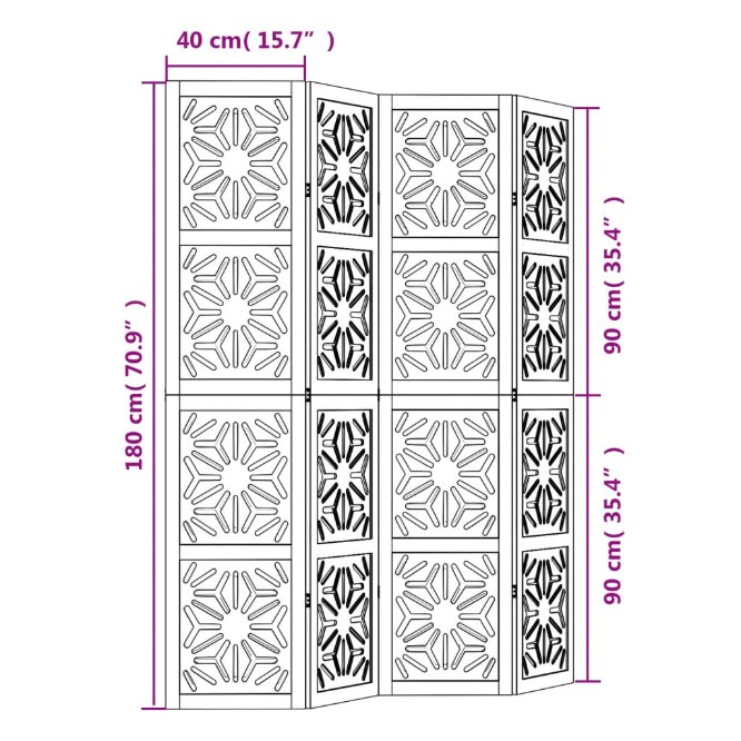 4-Paneelinen tilanjakaja ruskea ja musta täysi keisaripuu