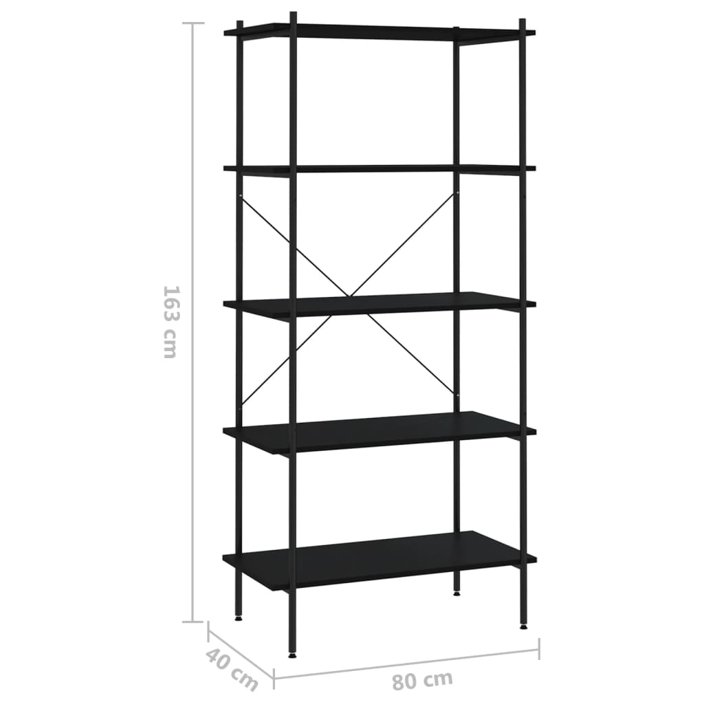 5-kerroksinen Hyllykkö musta 80x40x163 cm