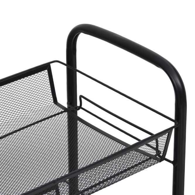 Tässä säilytysvaunussa on rautarakenne, joten se on tukeva ja vakaa. Tilaa säästävässä kärryssä on neljä rullapyörää, joista kahdessa on jarrut helpon liikkuvuuden ja pysähtymisen takaamiseksi. Verkkokorit ovat kestäviä ja irrotettavia, ne tarjoavat lisää säilytystilaa ja tarjoavat lisätilaa huoneeseen. Vaunu sopii täydellisesti säilyttämään leluja, avaimia, ruokaa, jne.