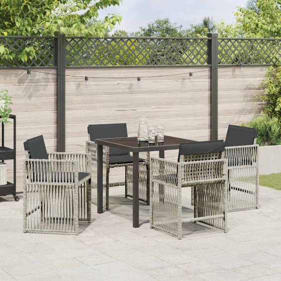 5 osainen pihan ruokailusarja tyynyillä vaaleanharmaasta polyrottinkista