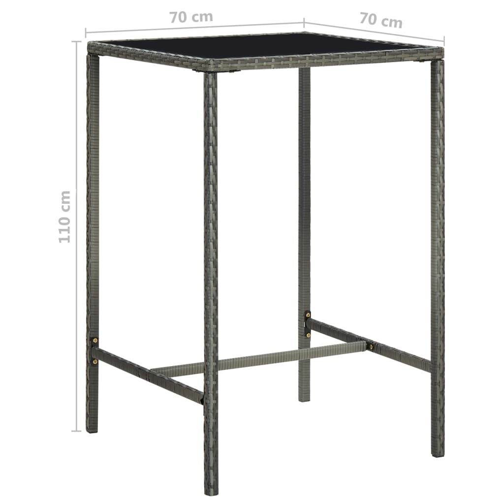 Baaripöydässä on vedenkestävällä PE-rottingilla päällystetty jauhemaalattu teräsrunko, joka takaa sen kestävän monia vuosia ulkokäytössä. Karkaistu lasinen pöytälevy tekee siitä helposti puhdistettavan. Jakkaroissa on luja teräsrunkorakenne ja ne on valmistettu säänkestävästä PE-rottingista, taaten vakauden ja helpon siirtämisen. Istuimen tyyny ja sisäänrakennettu jalkatuki lisäävät jakkaran istumamukavuutta.